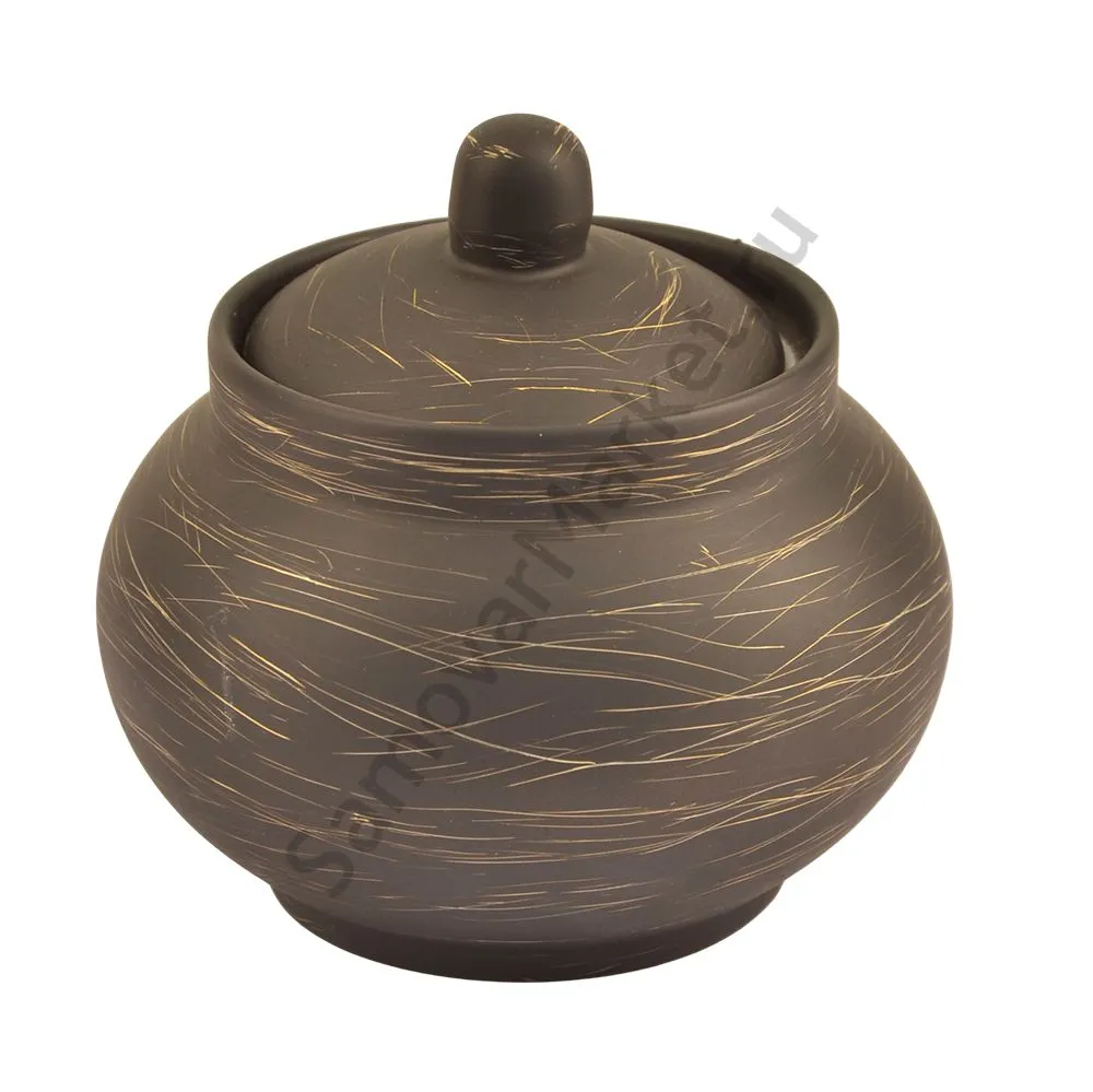 Изделие Дулевского фарфорового завода, завода, качество продукции которого проверено годами. Нами отбираются чайники, сахарницы, кружки и тарелки, которые наилучшим образом подходят по размеру и форме к самоварам. Далее они декорируются в цвет самоваров жаропрочными материалами.