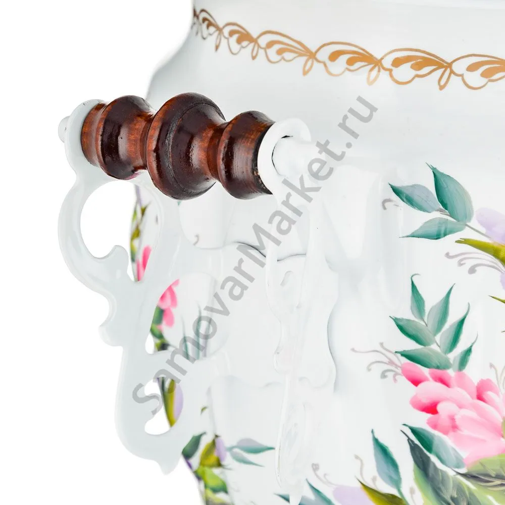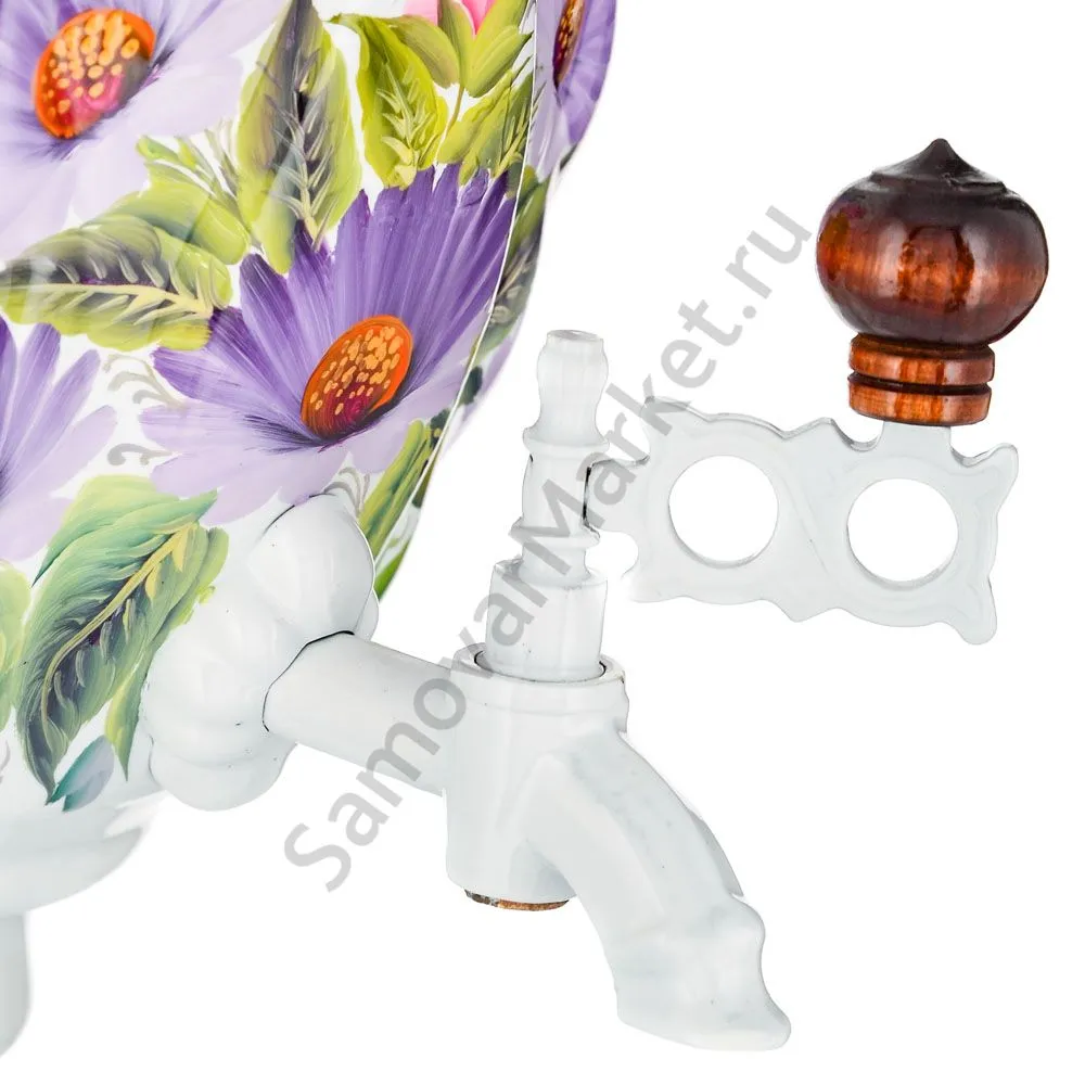 Ручки и хватки изготовлены из натурального дерева – берёзы, устойчивой к перепаду температур. Фурнитура роскошного глубокого каштанового цвета элитного красного дерева. Полностью готов к применению. Художественная роспись выполнена вручную специальными жаропрочными красками. Каждое изделие немного уникально и придает чаепитию особую красочность и даже праздничность. Сделано в Туле.
