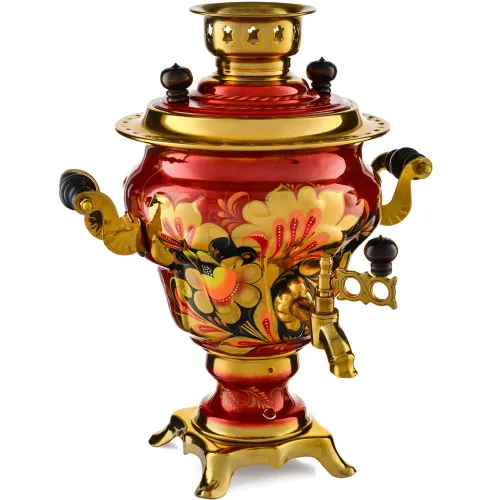 Ручки и хватки изготовлены из натурального дерева – берёзы, устойчивой к перепаду температур. Фурнитура роскошного глубокого каштанового цвета элитного красного дерева. Полностью готов к применению. Художественная роспись выполнена вручную специальными жаропрочными красками. Каждое изделие немного уникально и придает чаепитию особую красочность и даже праздничность. Сделано в Туле.