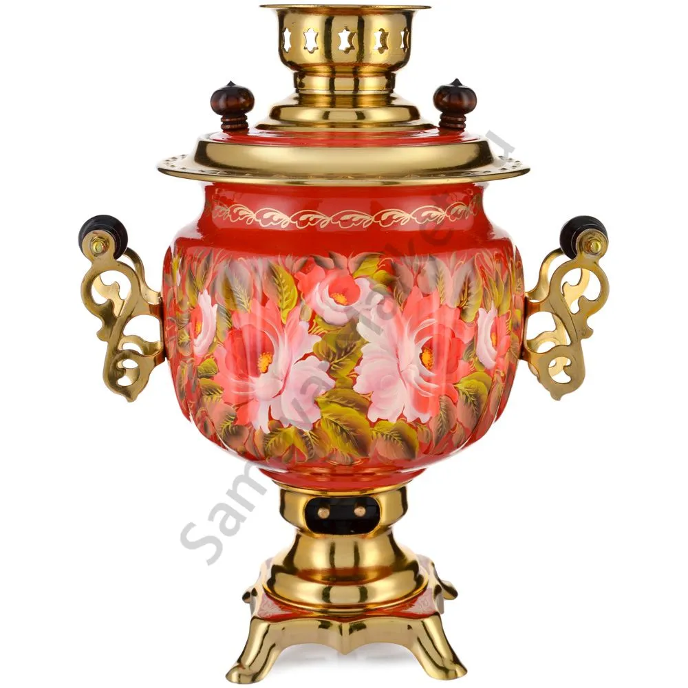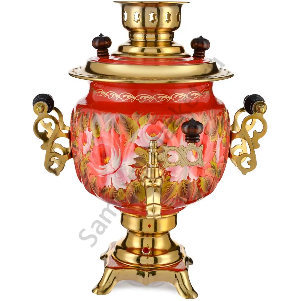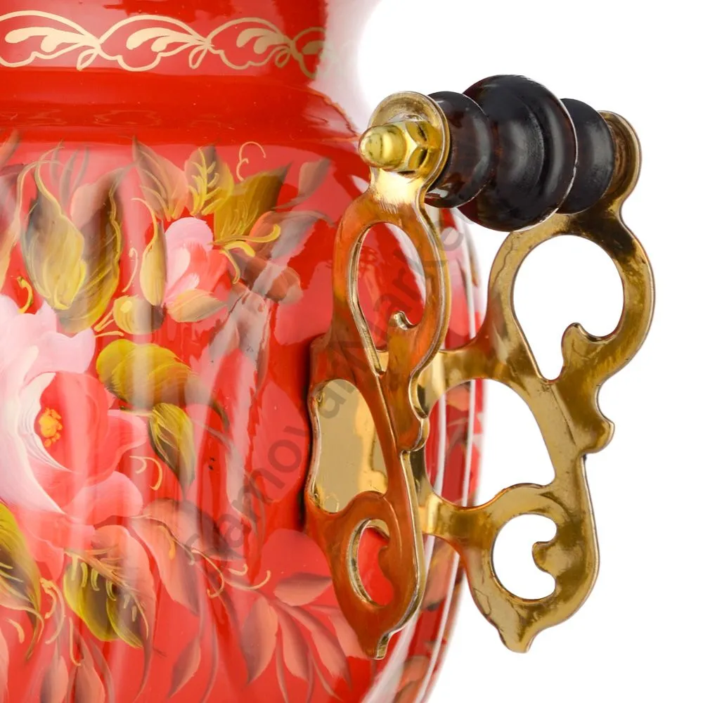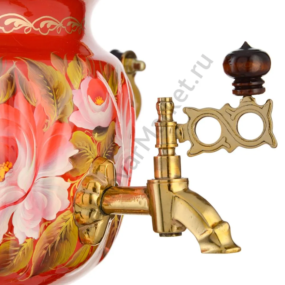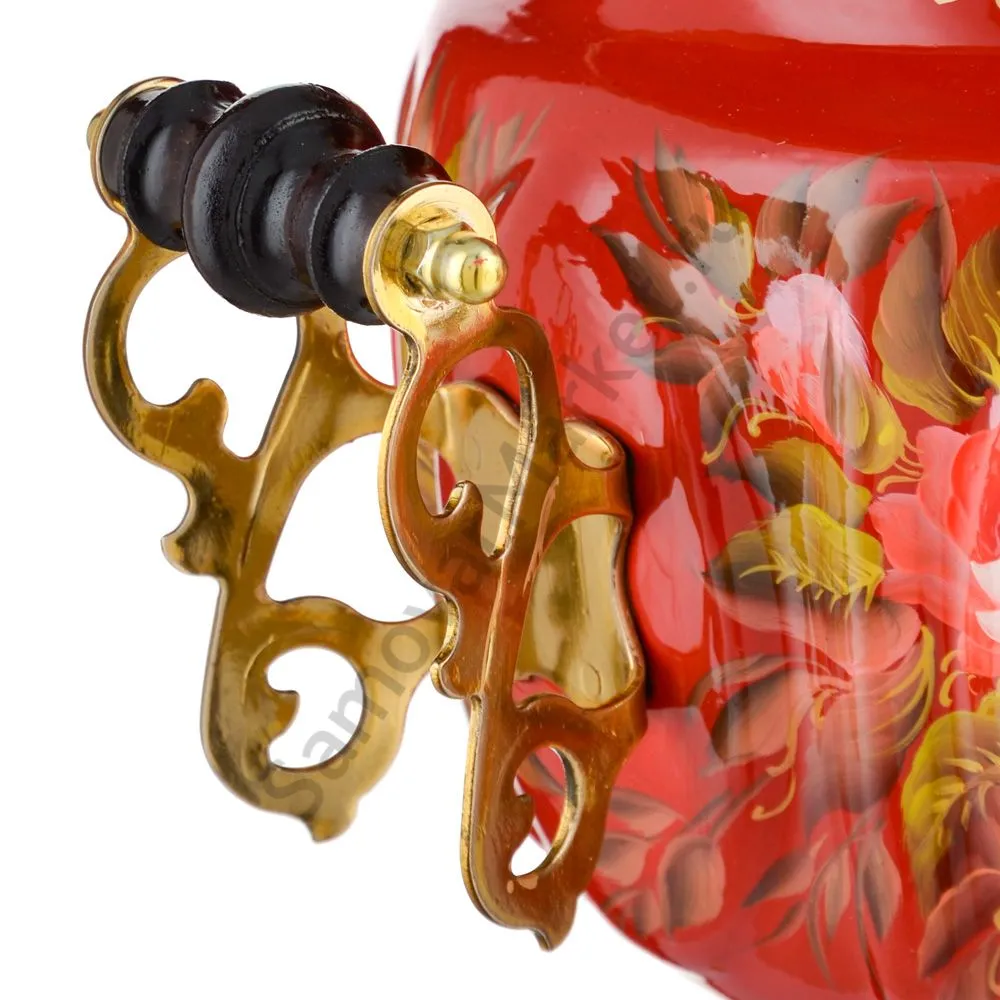 Ручки и хватки изготовлены из натурального дерева – берёзы, устойчивой к перепаду температур. Фурнитура роскошного глубокого каштанового цвета элитного красного дерева. Полностью готов к применению. Художественная роспись выполнена вручную специальными жаропрочными красками. Каждое изделие немного уникально и придает чаепитию особую красочность и даже праздничность. Сделано в Туле.