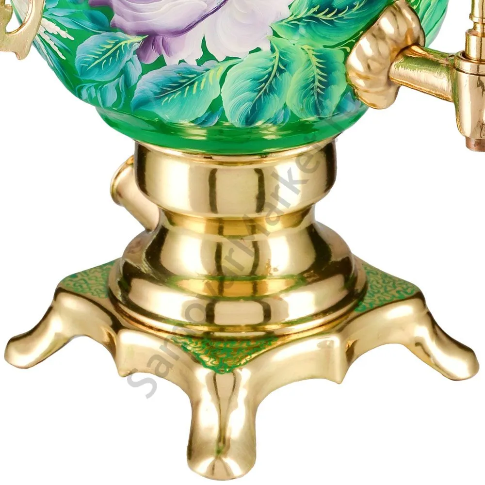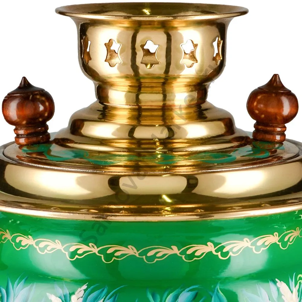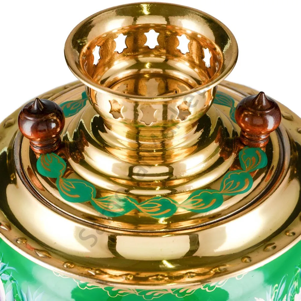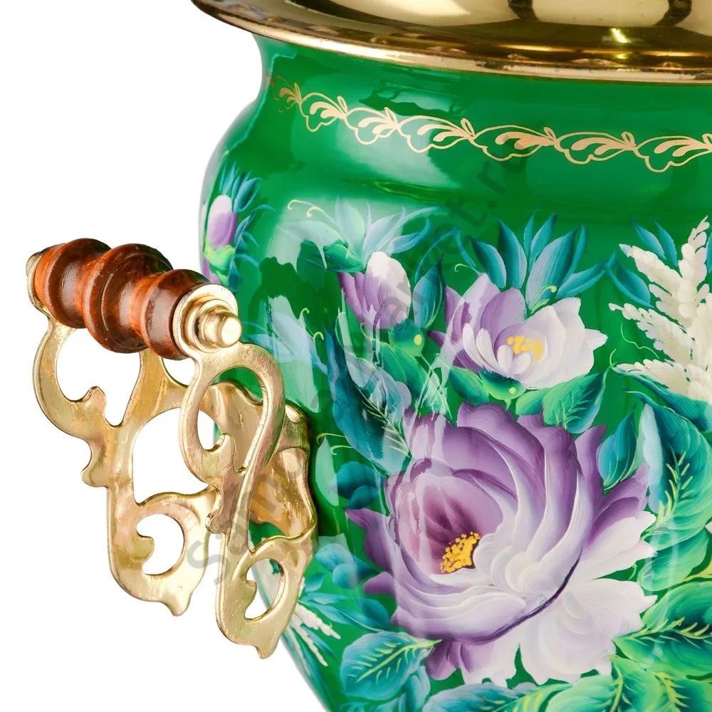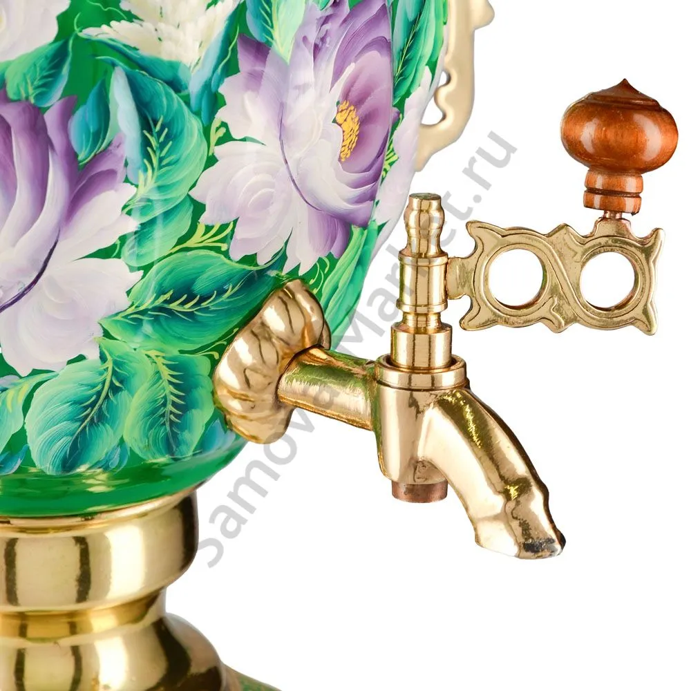 Ручки и хватки изготовлены из натурального дерева – берёзы, устойчивой к перепаду температур. Фурнитура роскошного глубокого каштанового цвета элитного красного дерева. Полностью готов к применению. Художественная роспись выполнена вручную специальными жаропрочными красками. Каждое изделие немного уникально и придает чаепитию особую красочность и даже праздничность. Сделано в Туле.
