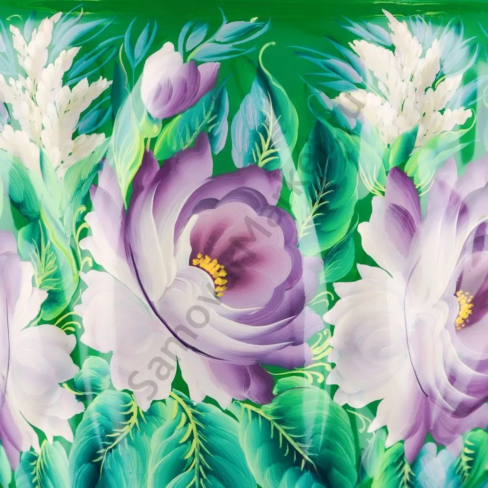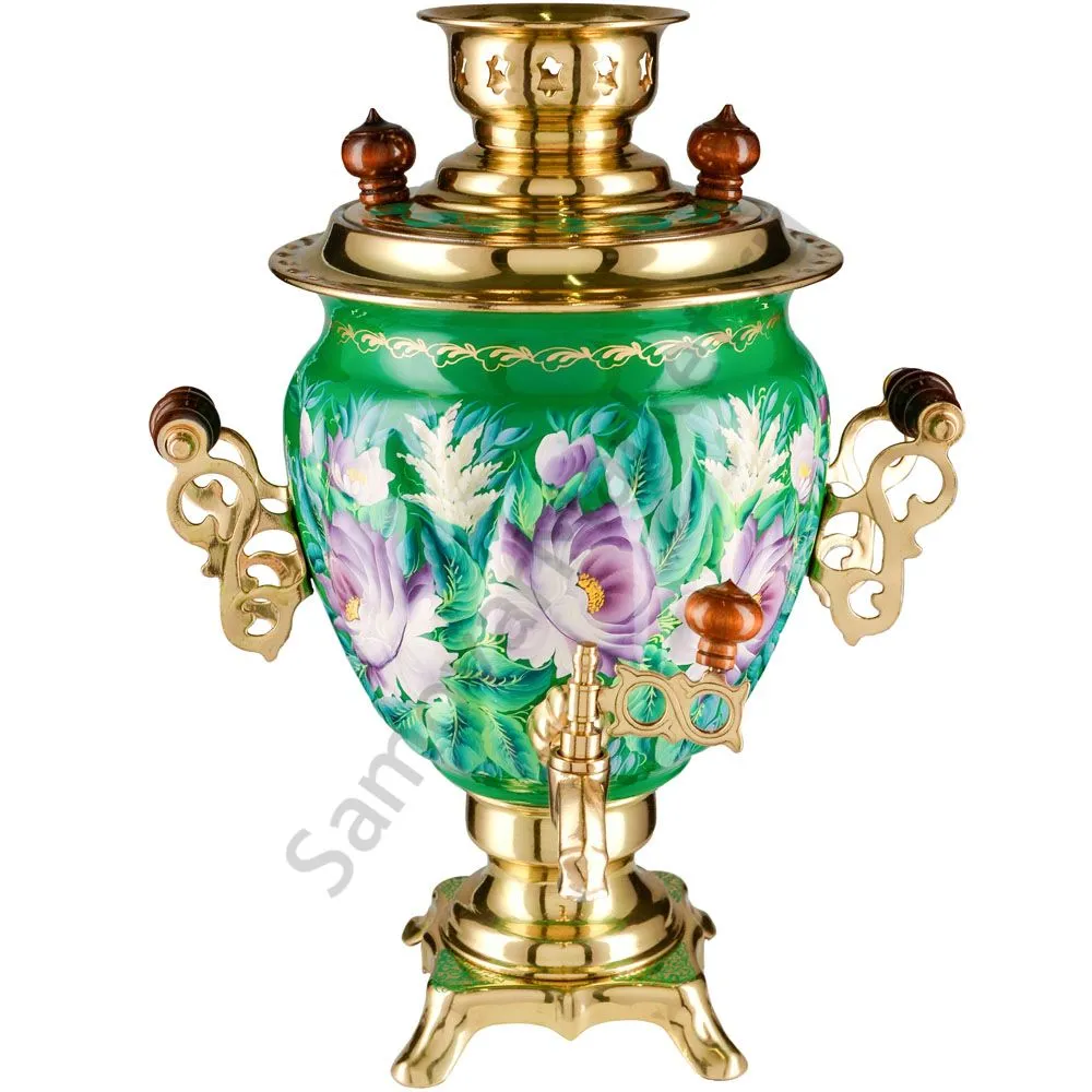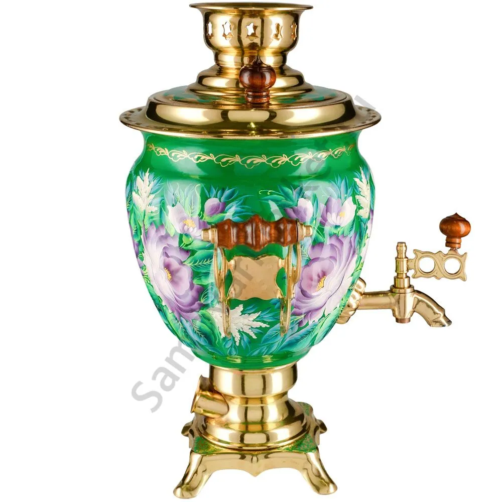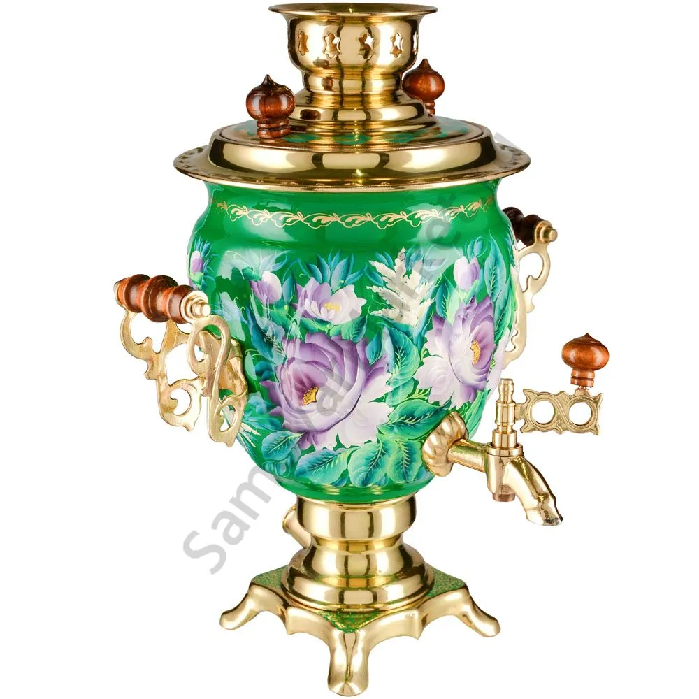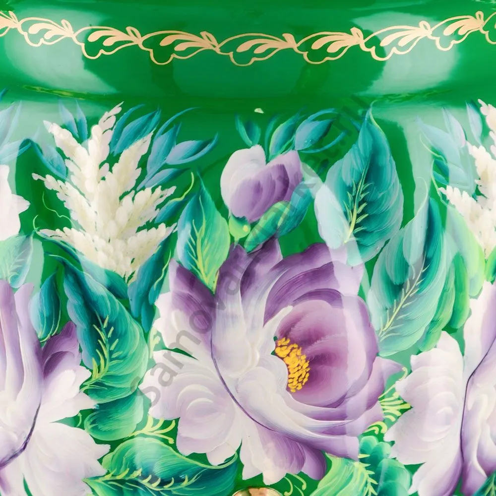 Ручки и хватки изготовлены из натурального дерева – берёзы, устойчивой к перепаду температур. Фурнитура роскошного глубокого каштанового цвета элитного красного дерева. Полностью готов к применению. Художественная роспись выполнена вручную специальными жаропрочными красками. Каждое изделие немного уникально и придает чаепитию особую красочность и даже праздничность. Сделано в Туле.