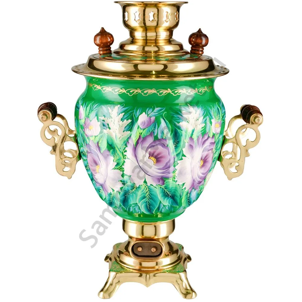 Работает от сети 220 V. К самовару прилагается шнур, красочная упаковка и инструкция по эксплуатации.