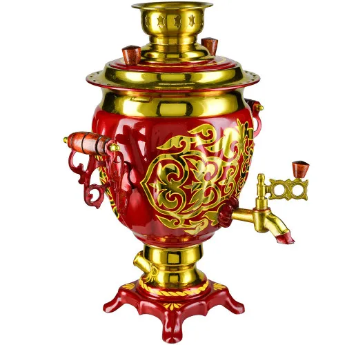 Работает от сети 220 V. К самовару прилагается шнур, красочная упаковка и инструкция по эксплуатации.
