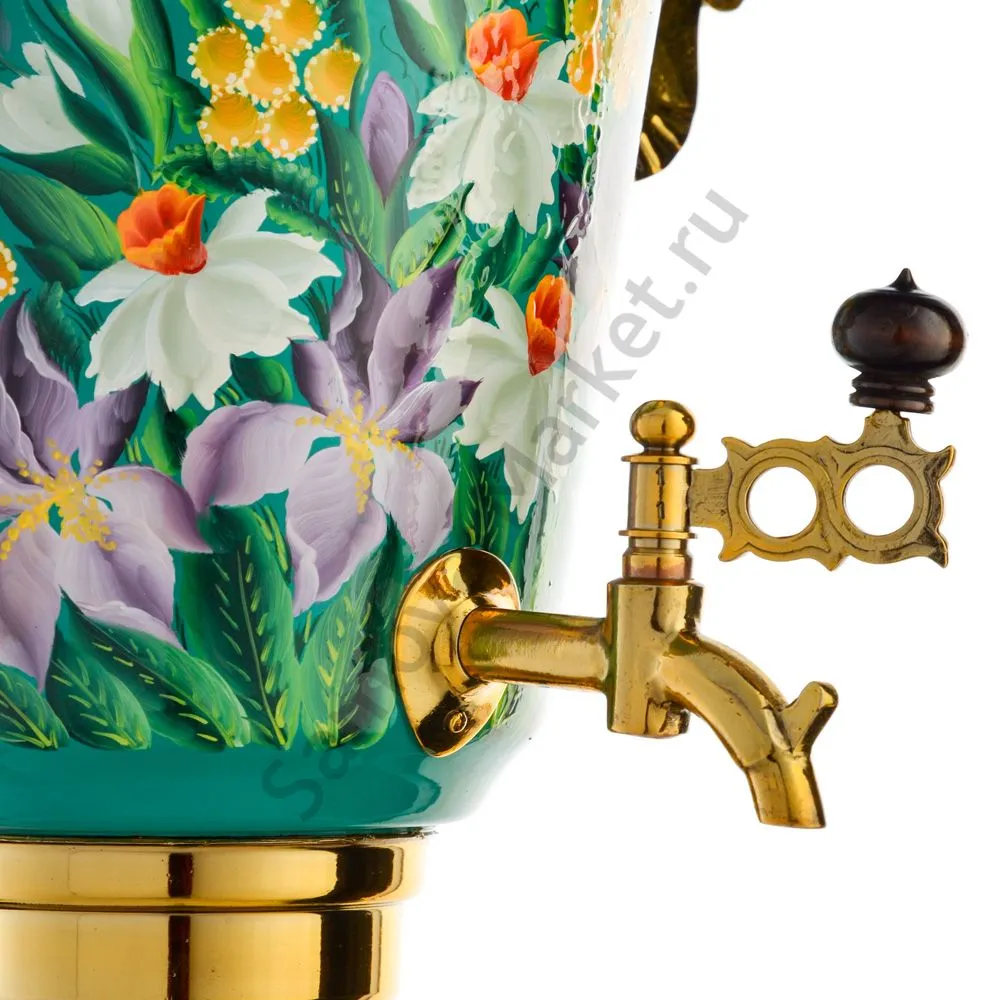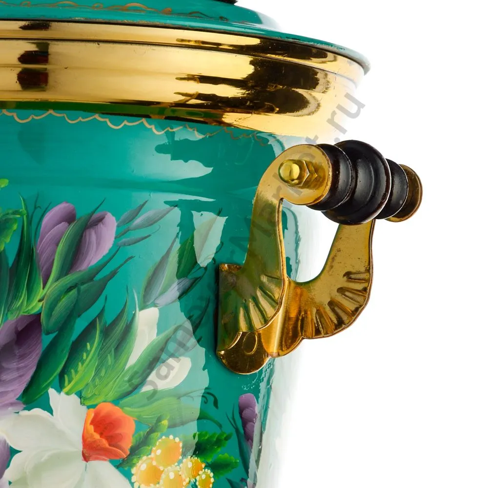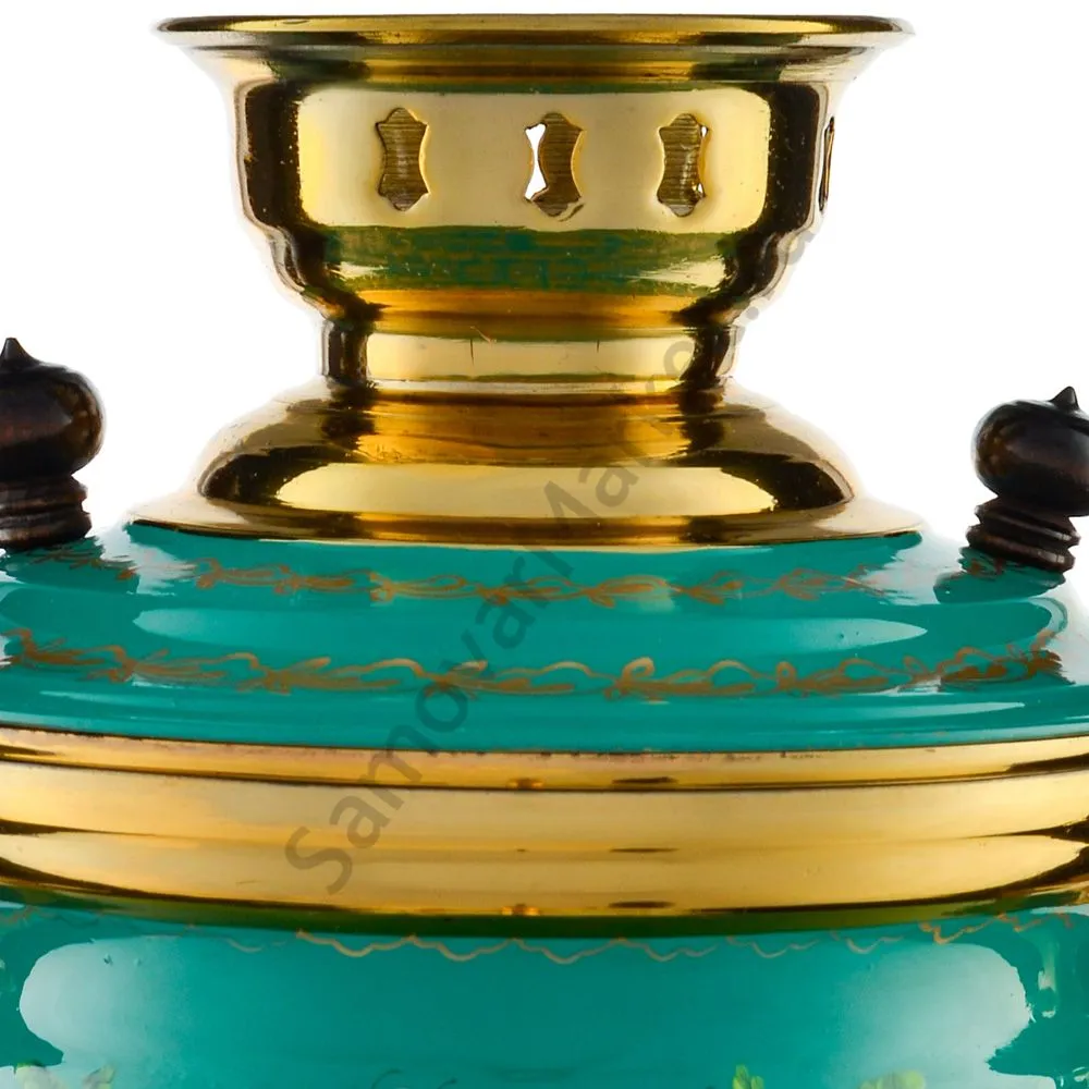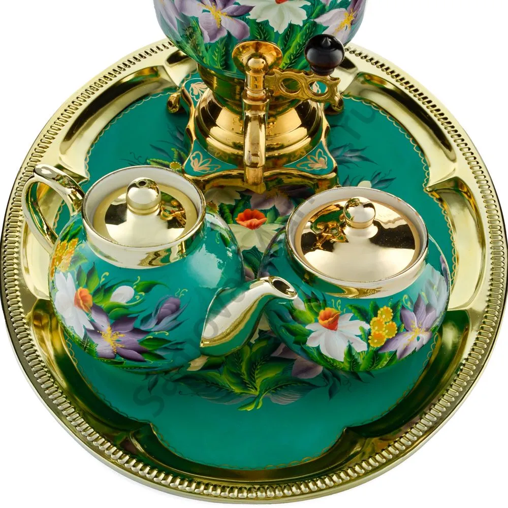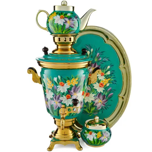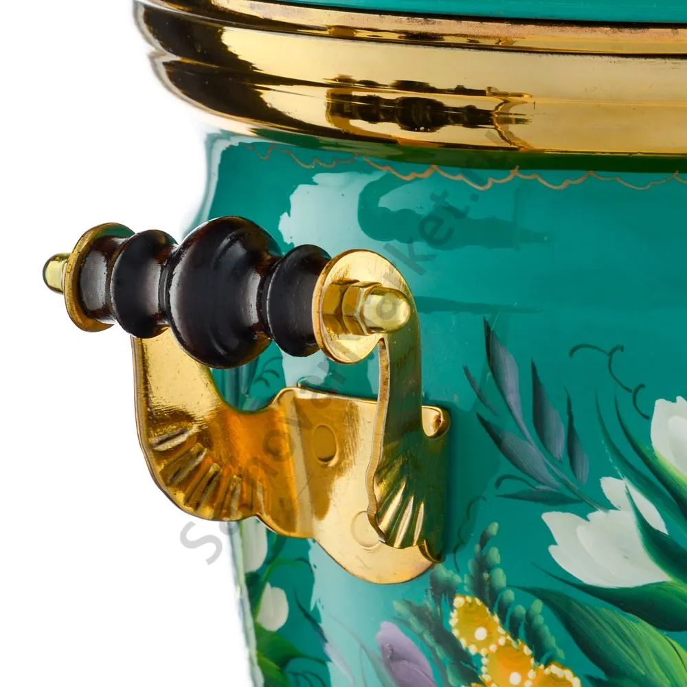 Ручки и хватки изготовлены из натурального дерева – берёзы, устойчивой к перепаду температур. Фурнитура роскошного глубокого каштанового цвета элитного красного дерева. Полностью готов к применению. Художественная роспись выполнена вручную специальными жаропрочными красками. Каждое изделие немного уникально и придает чаепитию особую красочность и даже праздничность. Сделано в России!