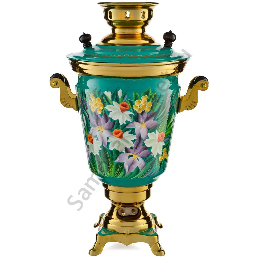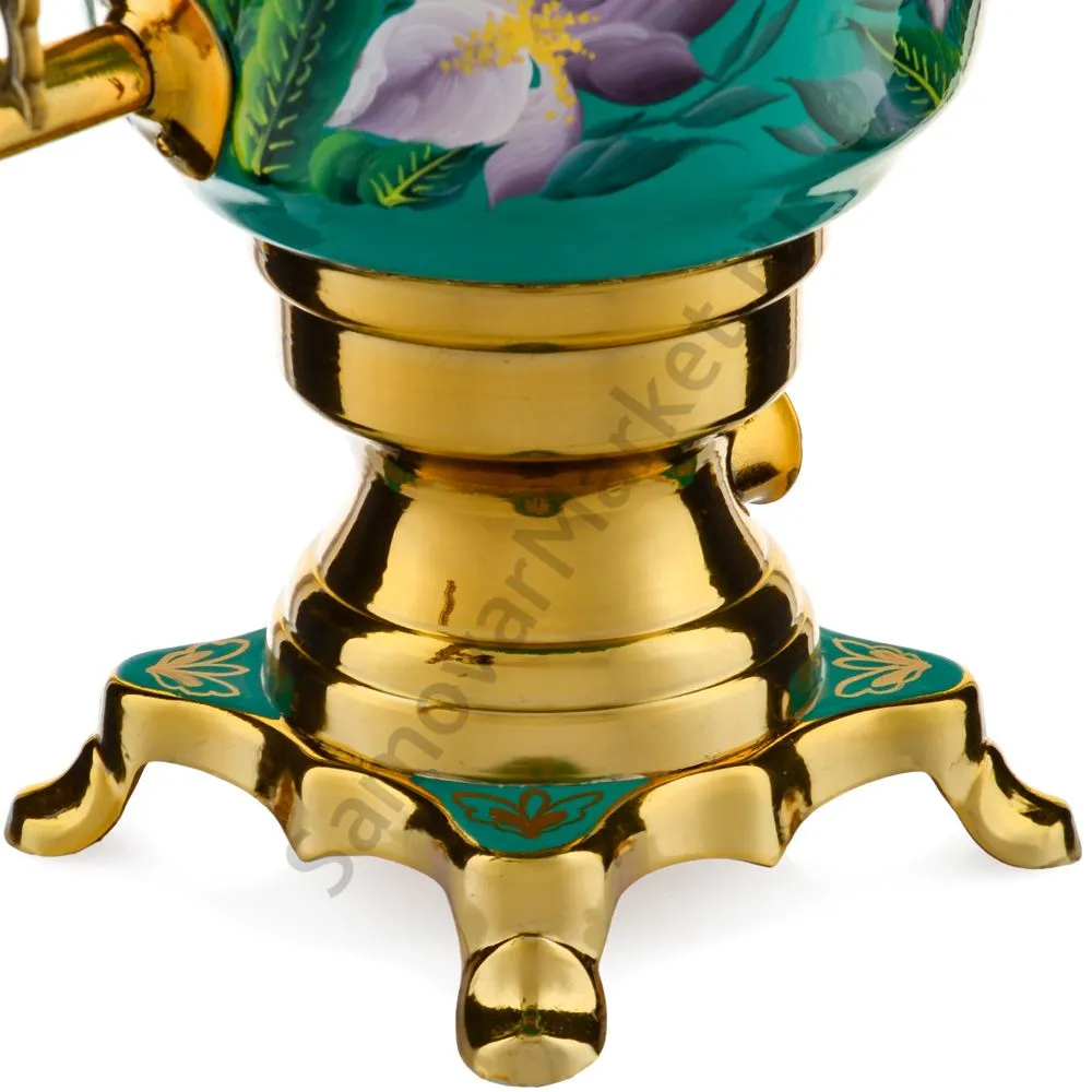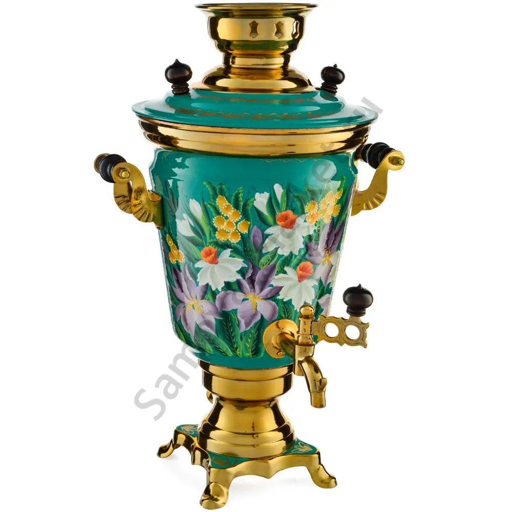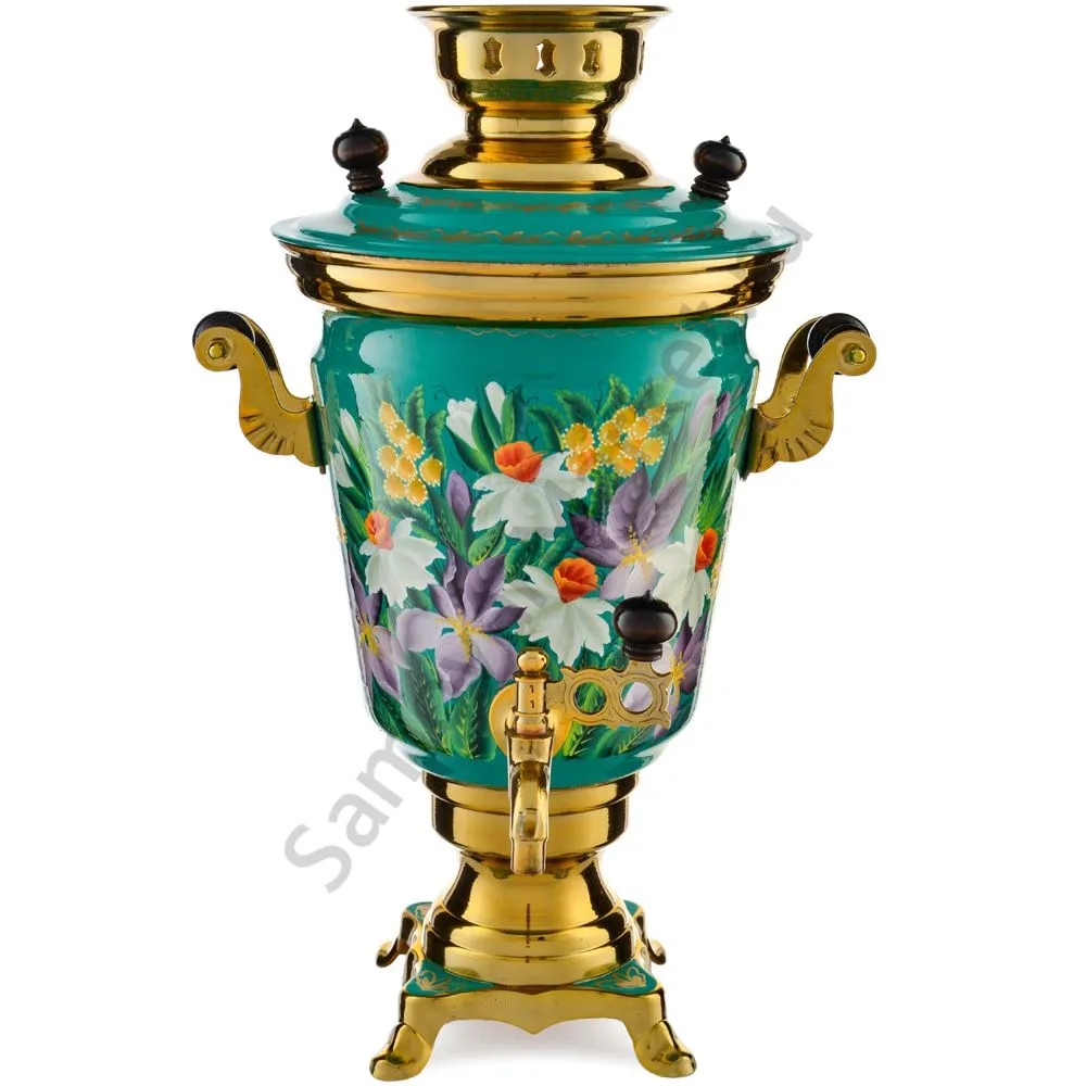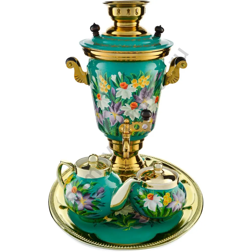 Ручки и хватки изготовлены из натурального дерева – берёзы, устойчивой к перепаду температур. Фурнитура роскошного глубокого каштанового цвета элитного красного дерева. Полностью готов к применению. Художественная роспись выполнена вручную специальными жаропрочными красками. Каждое изделие немного уникально и придает чаепитию особую красочность и даже праздничность. Сделано в России!