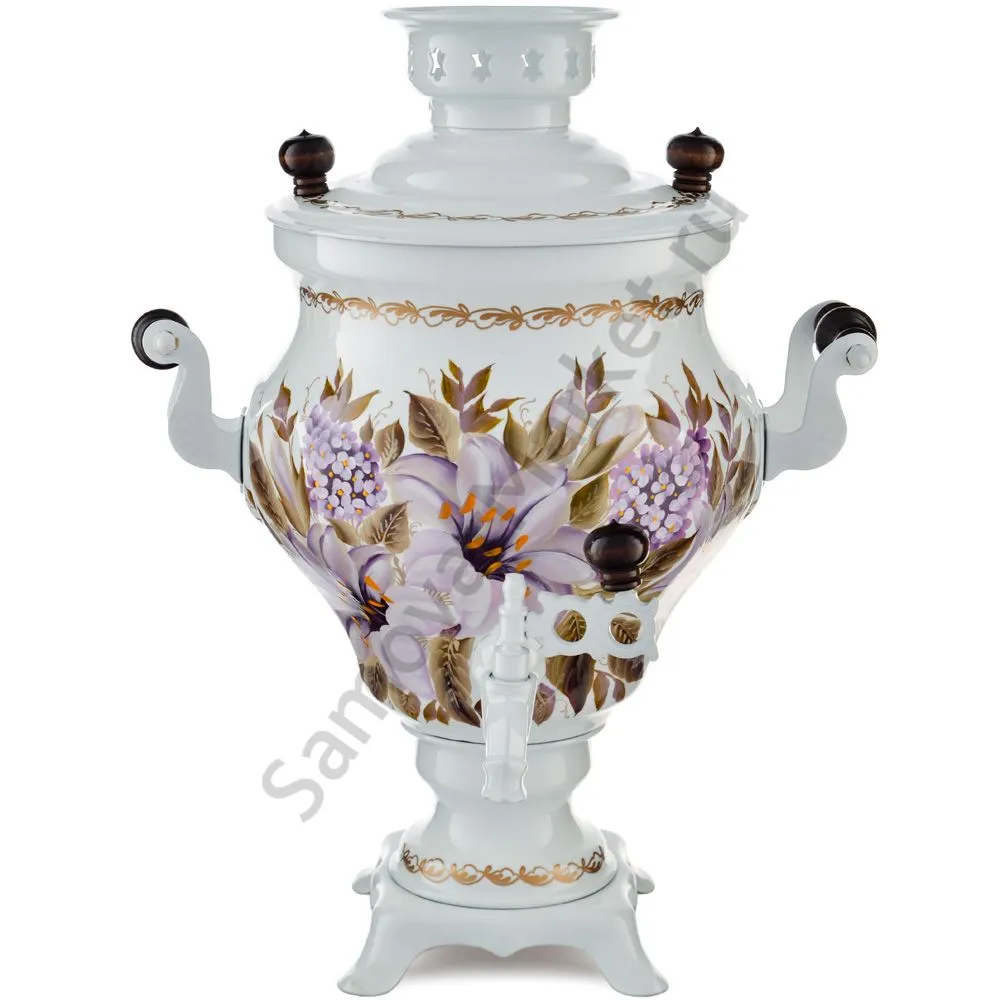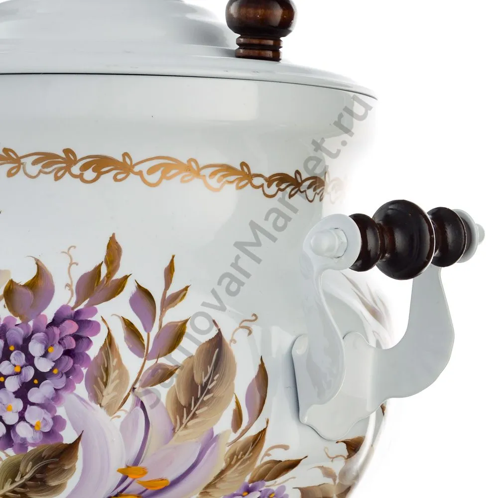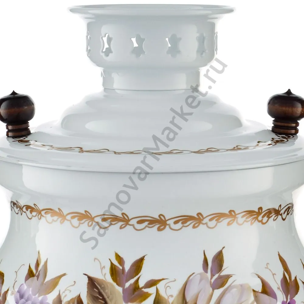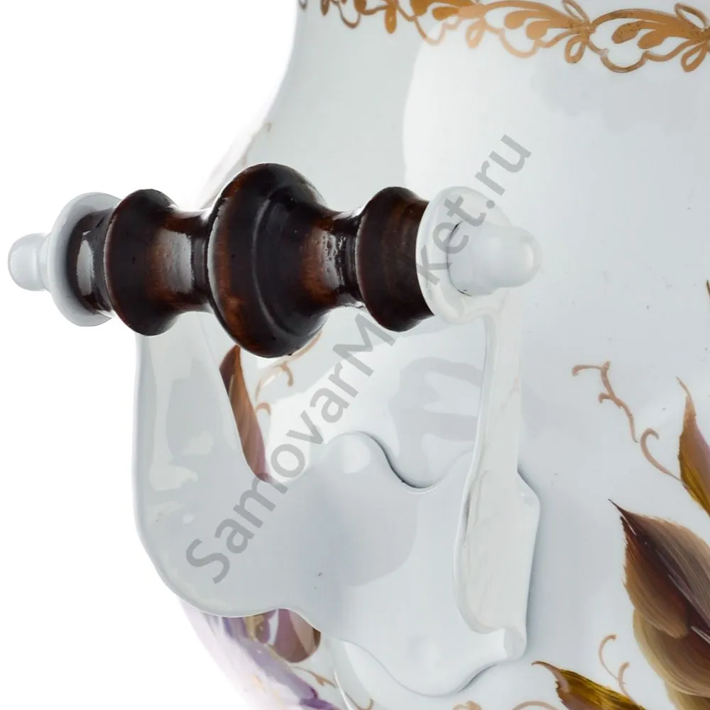 Ручки и хватки изготовлены из натурального дерева – берёзы, устойчивой к перепаду температур. Фурнитура роскошного глубокого каштанового цвета элитного красного дерева. Полностью готов к применению. Художественная роспись выполнена вручную специальными жаропрочными красками. Каждое изделие немного уникально и придает чаепитию особую красочность и даже праздничность. Сделано в Туле.