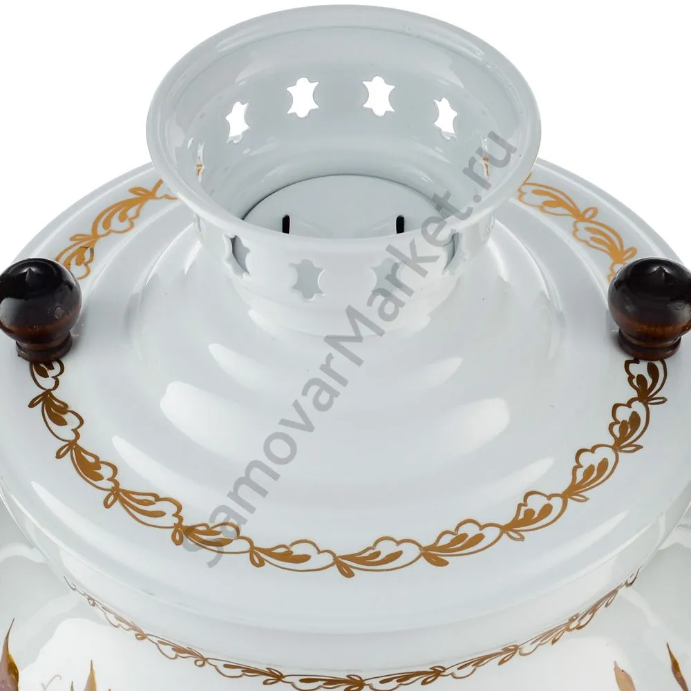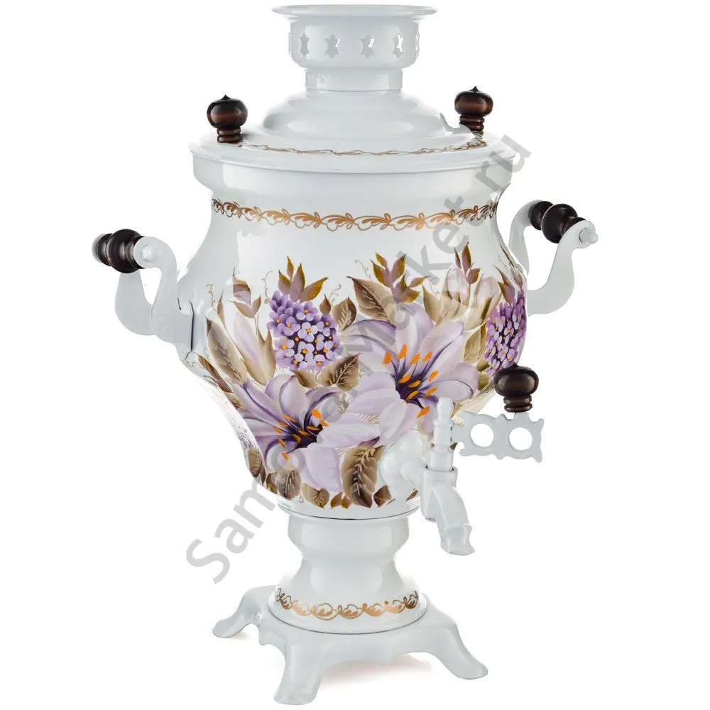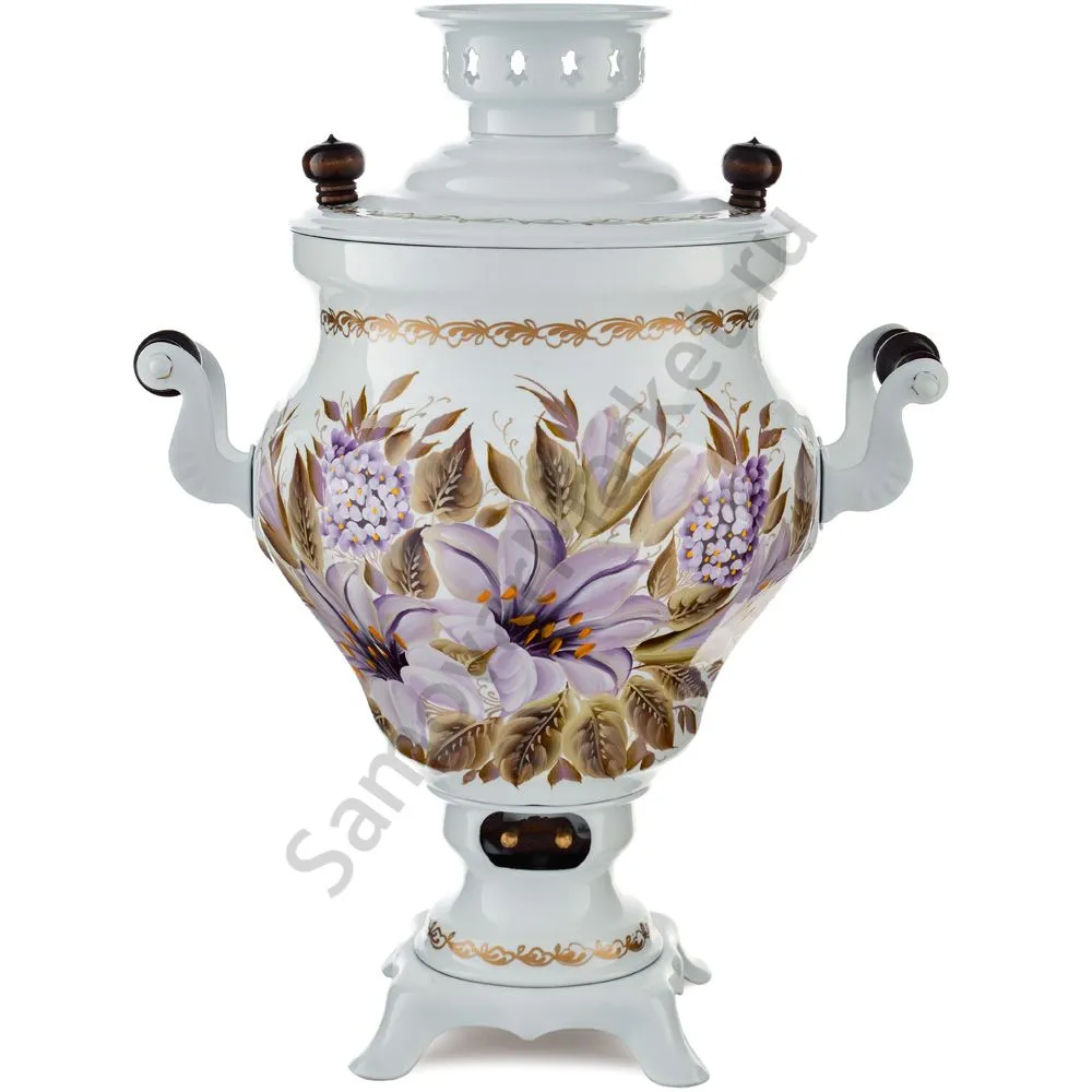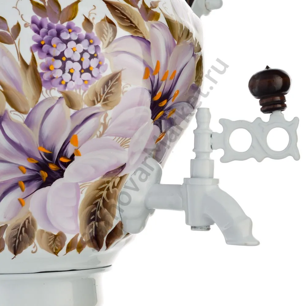 Ручки и хватки изготовлены из натурального дерева – берёзы, устойчивой к перепаду температур. Фурнитура роскошного глубокого каштанового цвета элитного красного дерева. Полностью готов к применению. Художественная роспись выполнена вручную специальными жаропрочными красками. Каждое изделие немного уникально и придает чаепитию особую красочность и даже праздничность. Сделано в Туле.