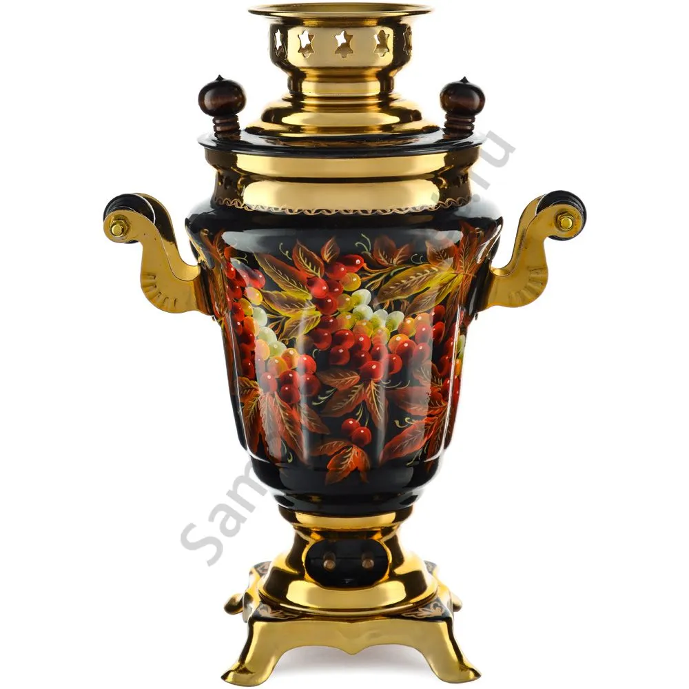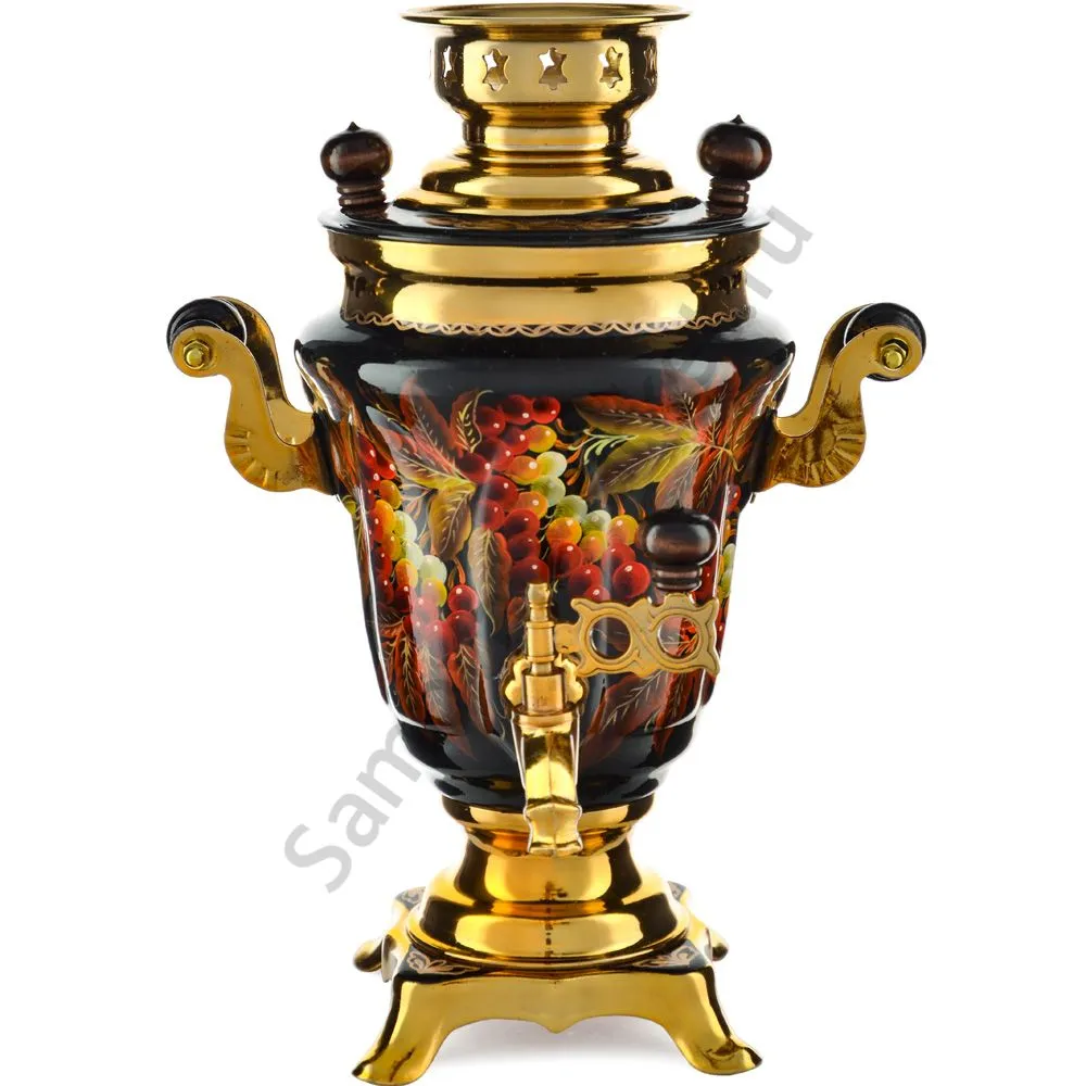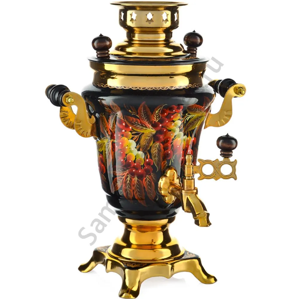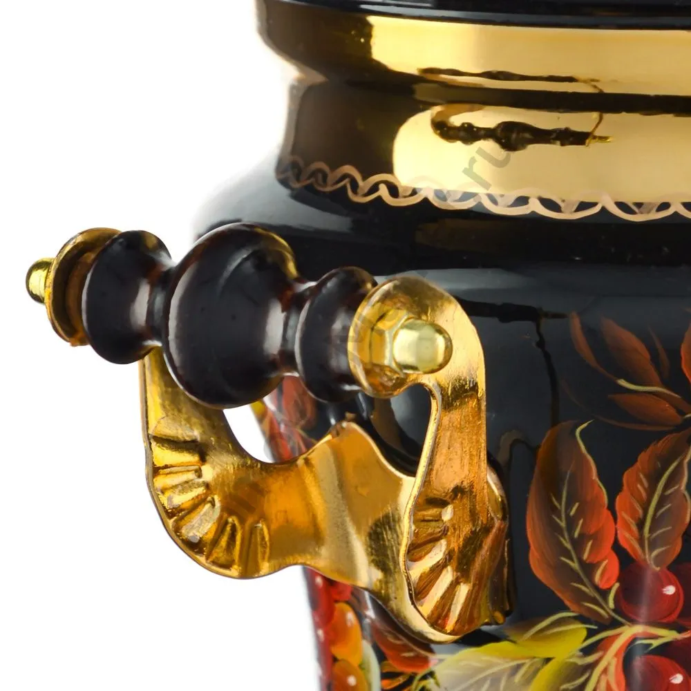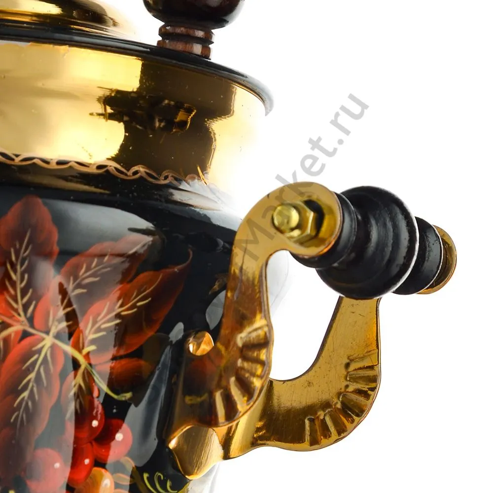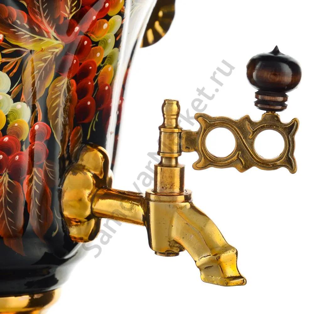 Ручки и хватки изготовлены из натурального дерева – берёзы, устойчивой к перепаду температур. Фурнитура роскошного глубокого каштанового цвета элитного красного дерева. Полностью готов к применению. Художественная роспись выполнена вручную специальными жаропрочными красками. Каждое изделие немного уникально и придает чаепитию особую красочность и даже праздничность. Сделано в Туле.