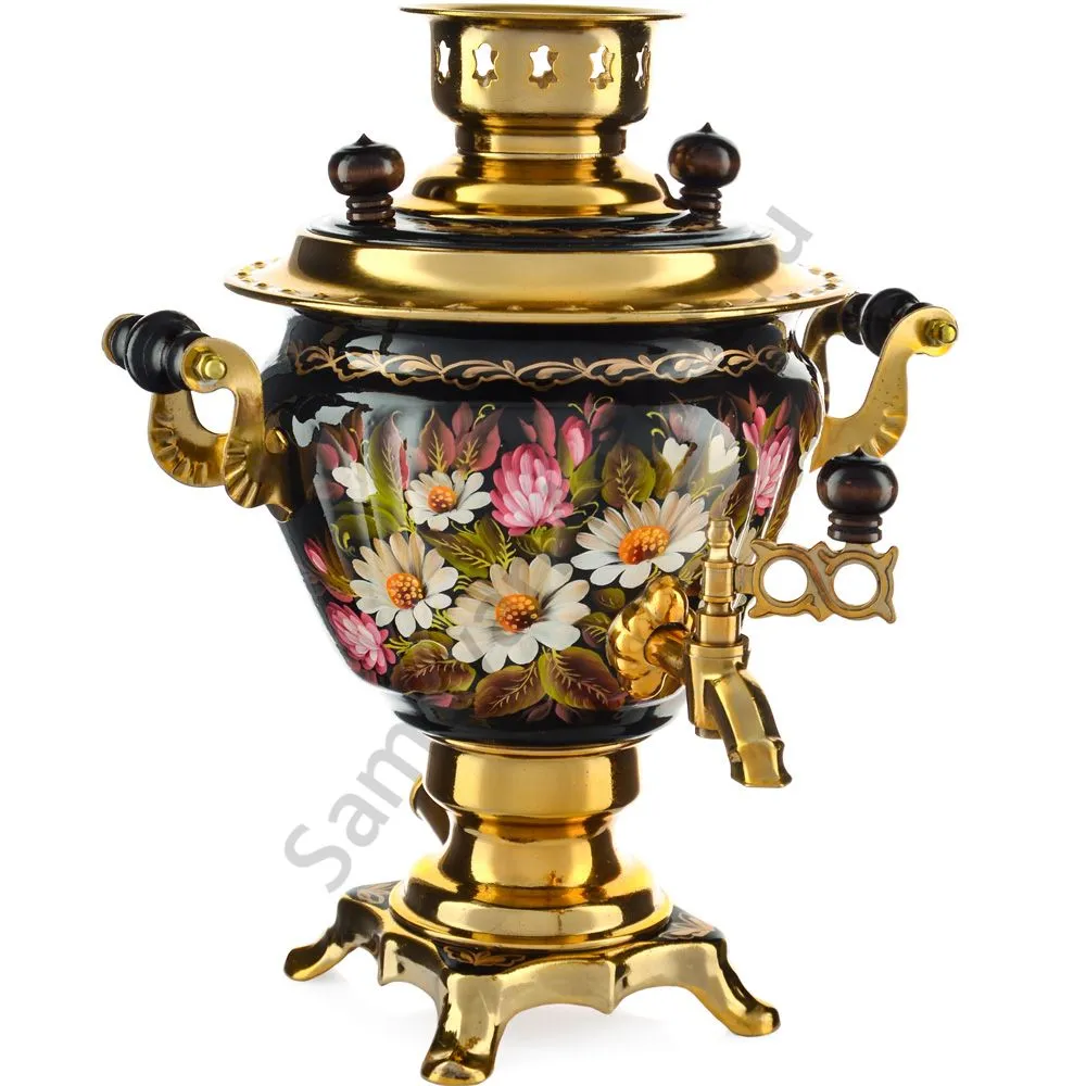 Ручки и хватки изготовлены из натурального дерева – берёзы, устойчивой к перепаду температур. Фурнитура роскошного глубокого каштанового цвета элитного красного дерева. Полностью готов к применению. Художественная роспись выполнена вручную специальными жаропрочными красками. Каждое изделие немного уникально и придает чаепитию особую красочность и даже праздничность. Сделано в Туле.
