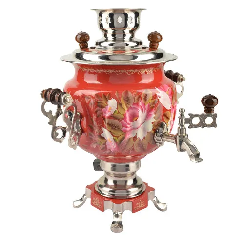 Ручки и хватки изготовлены из натурального дерева – берёзы, устойчивой к перепаду температур. Фурнитура роскошного глубокого каштанового цвета элитного красного дерева. Полностью готов к применению. Художественная роспись выполнена вручную специальными жаропрочными красками. Каждое изделие немного уникально и придает чаепитию особую красочность и даже праздничность. Сделано в Туле.