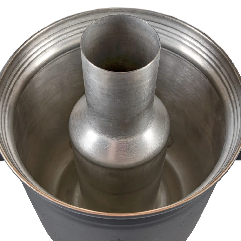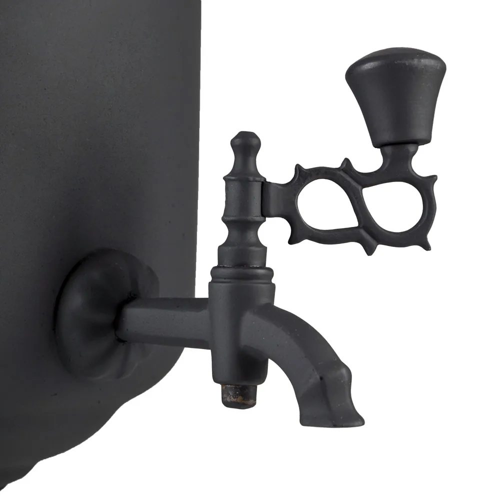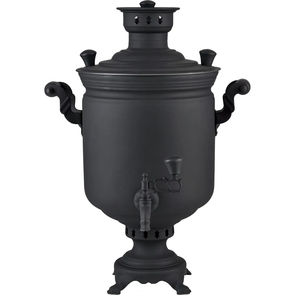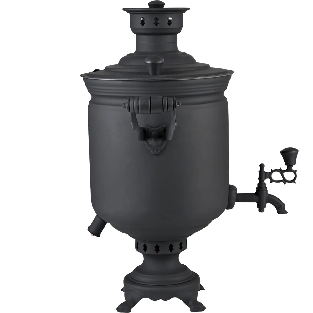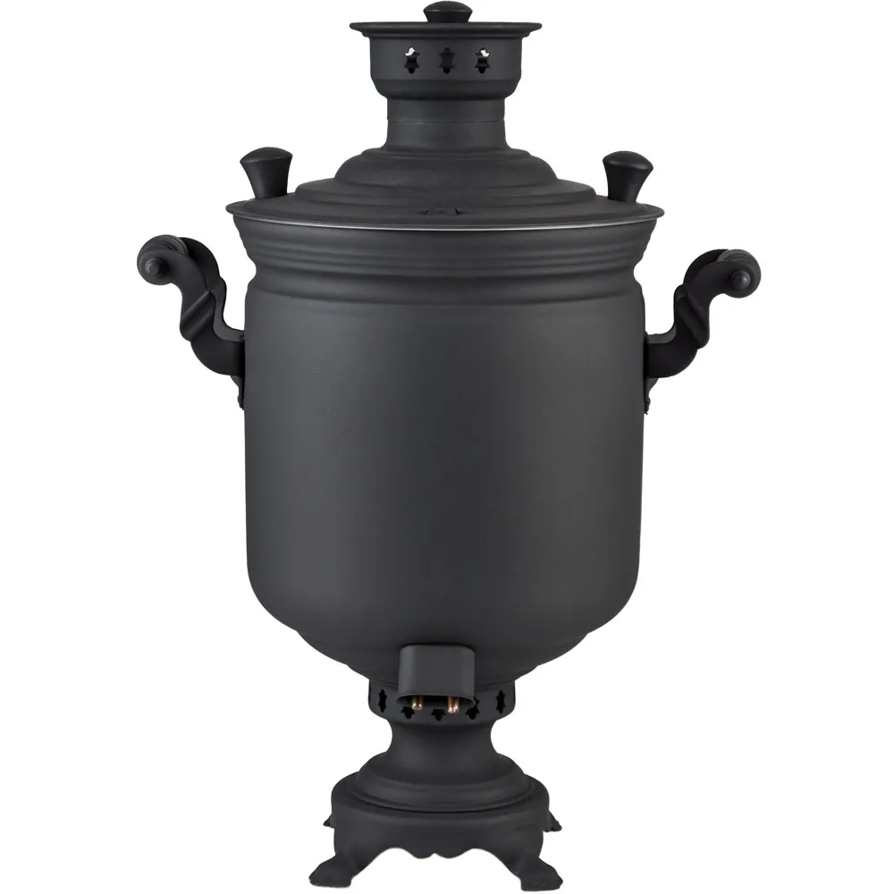 Этот самовар работает как на дровах, так и от электричества. Проверенная годами конструкция отличается практичностью и универсальностью. Воду, приготовленную на дровах, всегда можно подогреть при помощи электричества, т.к. греть повторно дровами неполный самовар категорически запрещается. Также такие самовары используют и просто как электрические или просто как дровяные в зависимости от обстоятельств.