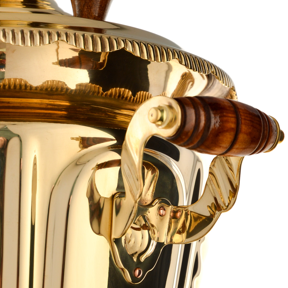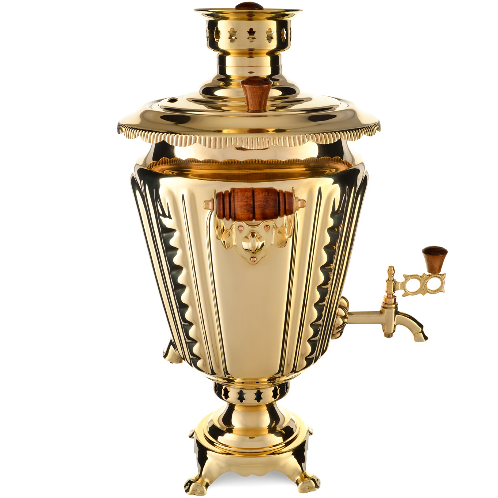 Этот самовар работает как на дровах, так и от электричества. Проверенная годами конструкция отличается практичностью и универсальностью. Воду, приготовленную на дровах, всегда можно подогреть при помощи электричества, т.к. греть повторно дровами неполный самовар категорически запрещается. Также такие самовары используют и просто как электрические или просто как дровяные в зависимости от обстоятельств.
