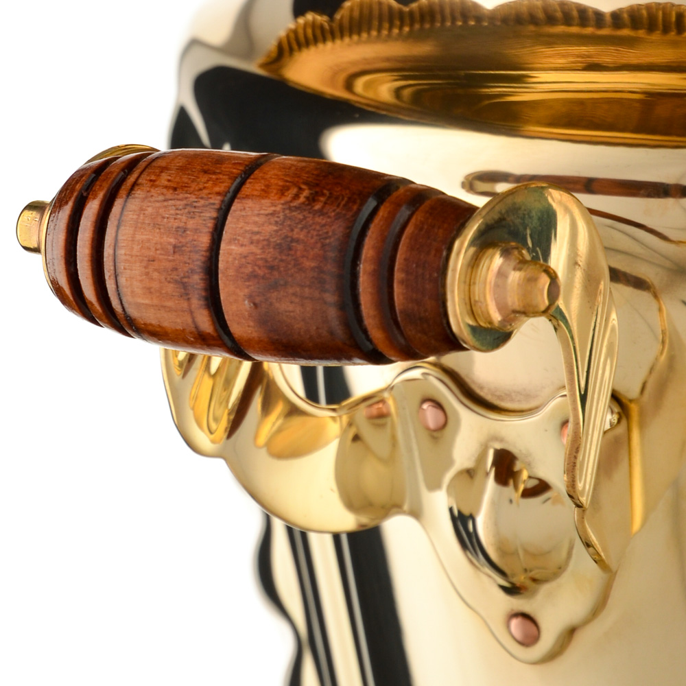 Ручки и хватки изготовлены из натурального дерева – берёзы, устойчивой к перепаду температур. Фурнитура роскошного глубокого каштанового цвета элитного красного дерева. Полностью готов к применению. Эта модель изготовлена из латуни. Рекомендуется полировка специальными средствами для поддержания блеска. Сделано в Туле.