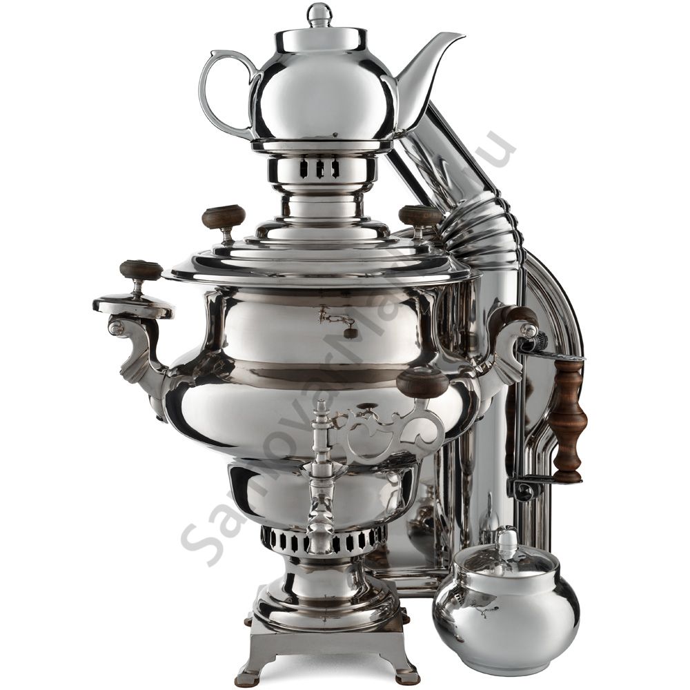 Этот самовар работает как на дровах, так и от электричества. Проверенная годами конструкция отличается практичностью и универсальностью. Воду, приготовленную на дровах, всегда можно подогреть при помощи электричества, т.к. греть повторно дровами неполный самовар категорически запрещается. Также т