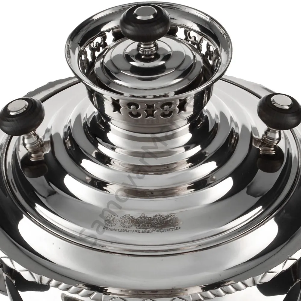 Этот самовар работает как на дровах, так и от электричества. Проверенная годами конструкция отличается практичностью и универсальностью. Воду, приготовленную на дровах, всегда можно подогреть при помощи электричества, т.к. греть повторно дровами неполный самовар категорически запрещается. Также такие самовары используют или просто как электрические, или просто как дровяные в зависимости от обстоятельств.