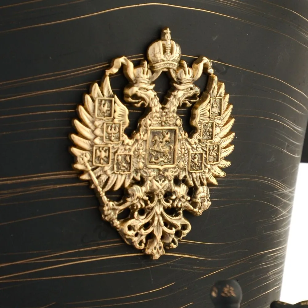 Ручки и хватки изготовлены из карболита. Карболит – это термостойкий ударопрочный пластик повышенной прочности. Полностью готов к применению. Латунь склонна к обрастанию естественной патиной. Этот процесс неизбежен. К сожалению насыщенная и однородная партия приобретается годами и по началу может казаться просто неопрятной. Искусственная патина – хороший вариант для тех, кто не хочет ждать и не любит блеск. Сделано в Туле.