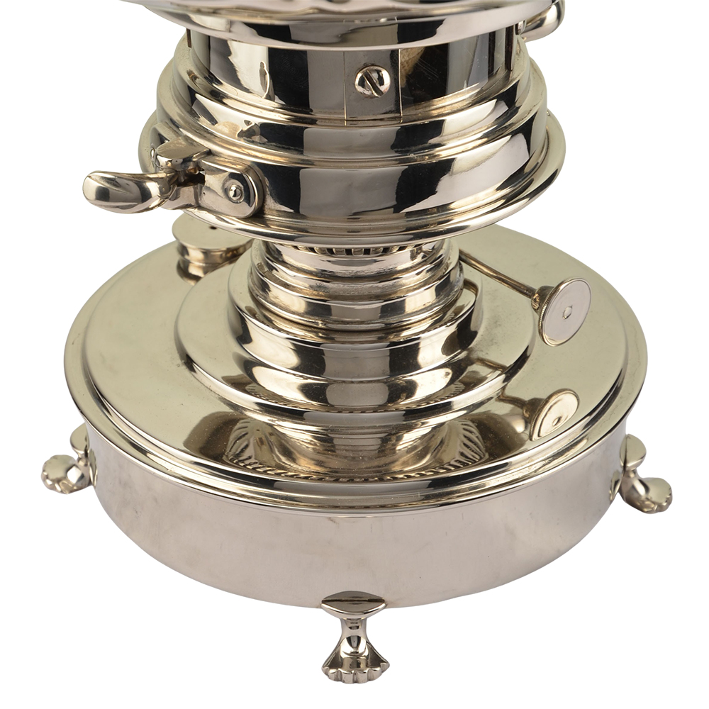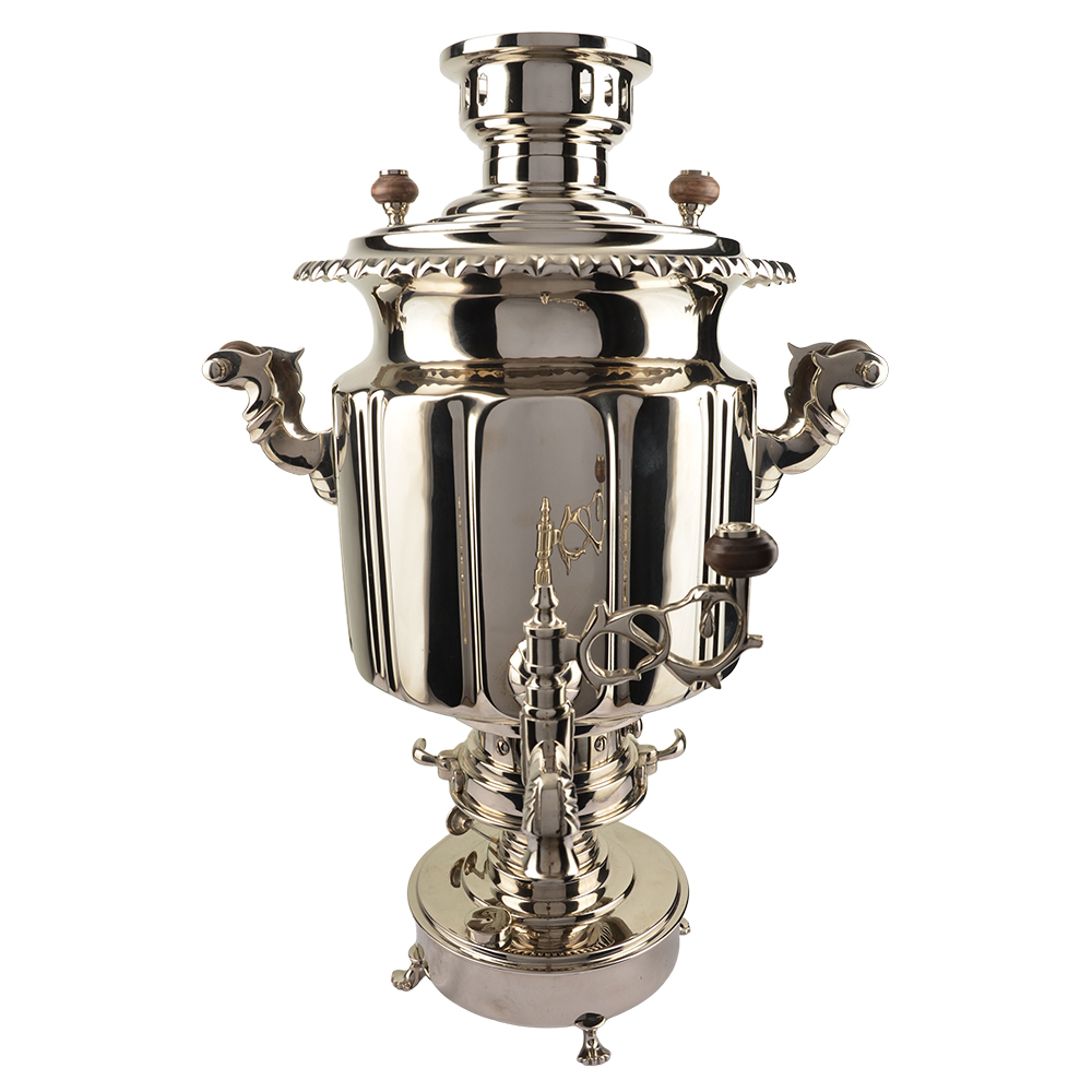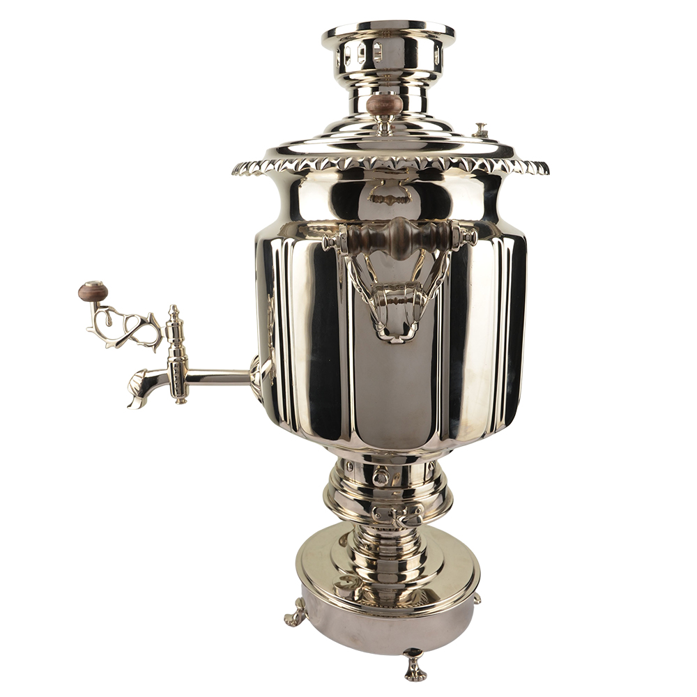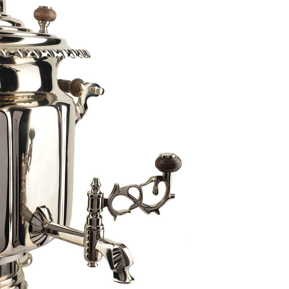 Уникальная особенность данного самовара заключается в том, что он – керосиновый. Нагрев воды происходит за счёт горения спирта в специальной горелке, расположенной в нижней части изделия. Внутренние стенки покрыты пищевым оловом методом гальваники.
